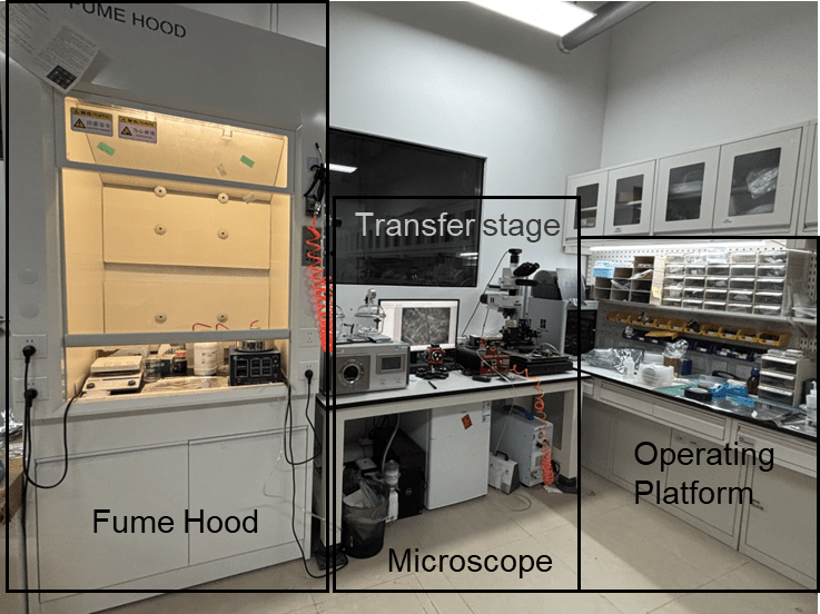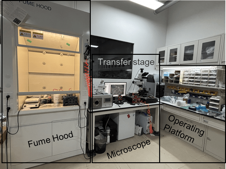 • Mechanical exfoliation of 2D materials on the working bench (graphene, hBN, TMDs, etc.)